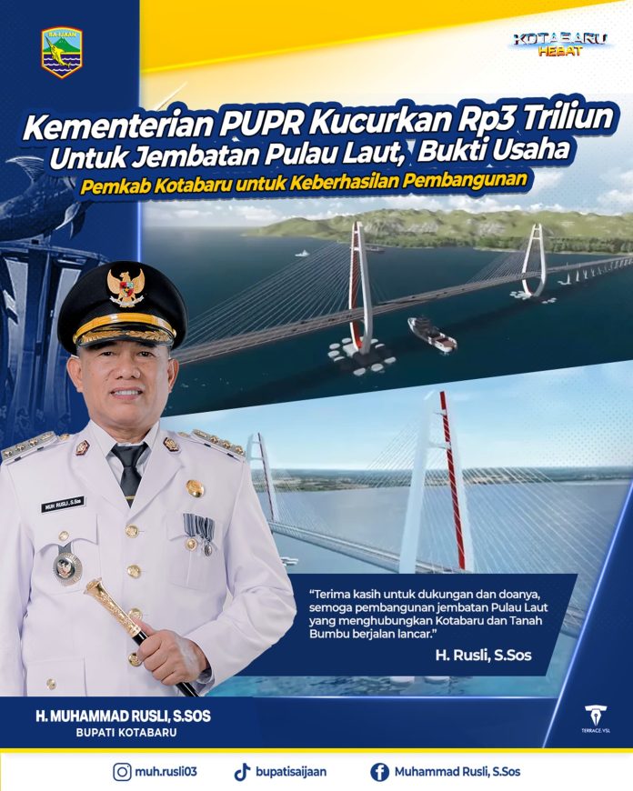 “Perjuangan memperoleh anggaran pusat akhirnya berhasil. Melalui Kementerian PUPR, pembangunan bentang tengah Jembatan Pulau Laut mendapat dukungan sebesar Rp3 triliun,” jelas Yasin, Kamis (25/9).