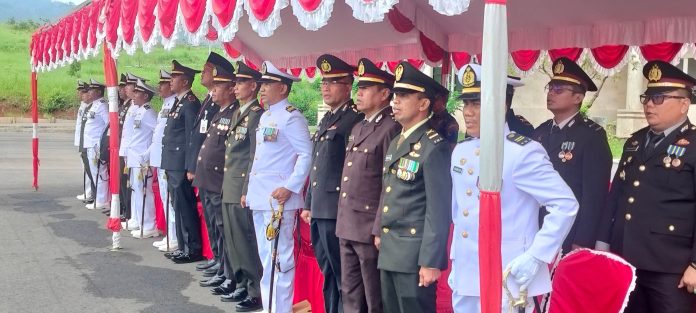 Upacara berlangsung khidmat dengan inspektur upacara Dandim 1004/Kotabaru Letkol Inf Cecep Cahyadi, S.E., M.I.Pol serta diikuti oleh jajaran Forkopimda, TNI, Polri, ASN, dan pelajar.