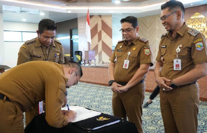 Infosatu.cloud, Kotabaru – Pemerintah Kabupaten (Pemkab) Kotabaru melaksanakan penandatanganan komitmen bersama dengan para kepala Satuan Kerja Perangkat Daerah (SKPD) dan camat dalam rangka penyelesaian Tindak Lanjut Rekomendasi Hasil Pemeriksaan (TLRHP) BPK Semester II.